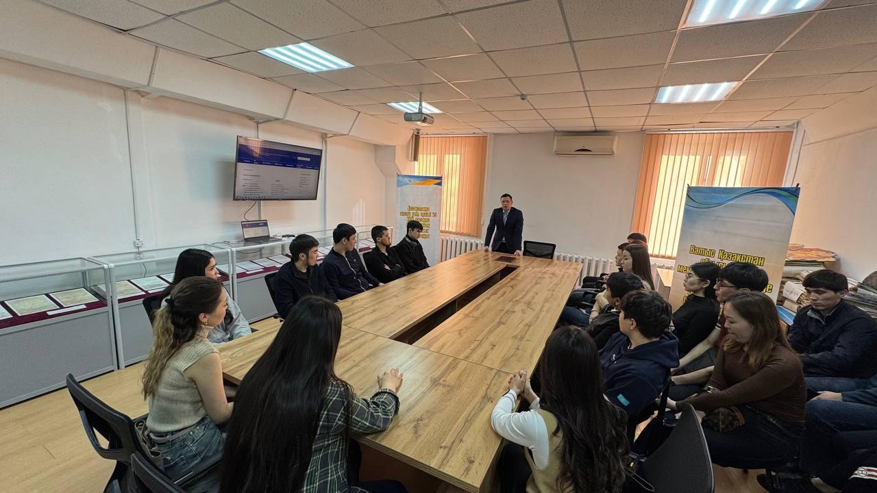 Шара барысында Батыс Қазақстан облысының мемлекеттік архивінің архив құжаттарын пайдалану және жариялау бөлімінің басшысы Доши Бағдат Серікұлы кіріспе сөз сөйледі.Архив құжаттарын пайдалану және жариялау бөлімінің архивисті Ижанов Жасұлан Саматұлы аталған көрмелермен студенттерді толыққанды таныстырды.